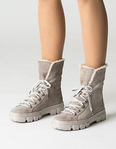 Mit diesen lässigen Schnürbooties von Paul Green kreieren Sie im Handumdrehen lässige Streetstyles. Die Stiefelette aus grauem Veloursleder überzeugt mit kuscheligem Merino-Warmfutter (mulesing-free) und hält somit Ihre Füße angenehm warm. Edle Ösen mit sportlicher Schnürung verleihen eine besondere Optik. Zudem kann der obere Schaftteil, je nach Bedarf, nach unten gestülpt werden. Die progressive Laufsohle sorgt für Trittfestigkeit. Ein wahrer Hingucker mit funktionellem Touch für kalte Wintertage!