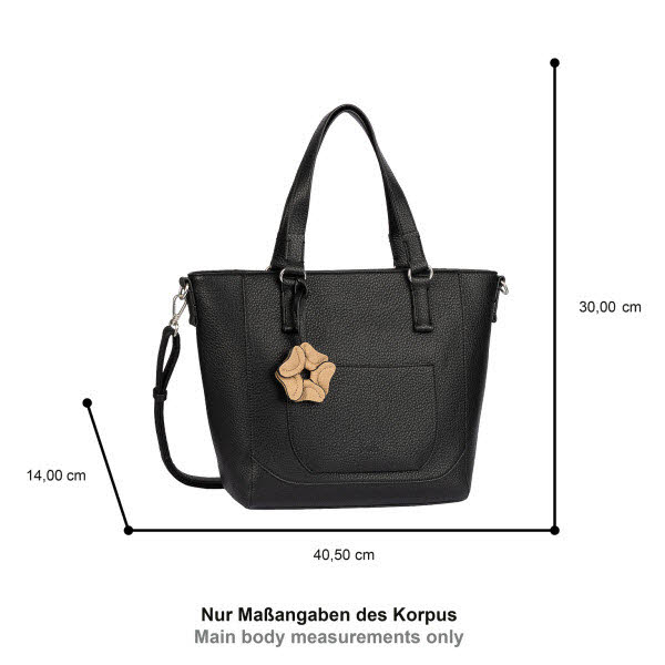 Die Serie Sofiana der Gabor Kollektion besticht durch ihre elegante, abgerundete Linienführung und ist aus grob genarbtem Kunstleder gefertigt. Ein besonderer Blickfang ist der abnehmbare Blütenanhänger in Kontrastfarbe, der der Tasche eine frische, verspielte Note verleiht. Großer Shopper im Querformat mit Reißverschlusshauptfach. DIN A4 geeignet. 1 Steckfach vorne, 1 Reißverschlussfach hinten. 1 Reißverschlussfach, 1 Handyfach, 1 Steckfach innen. 2 Kurzgriffe, 1 abnehmbarer, verstellbarer Schulterriemen, 1 abnehmbarer Anhänger.